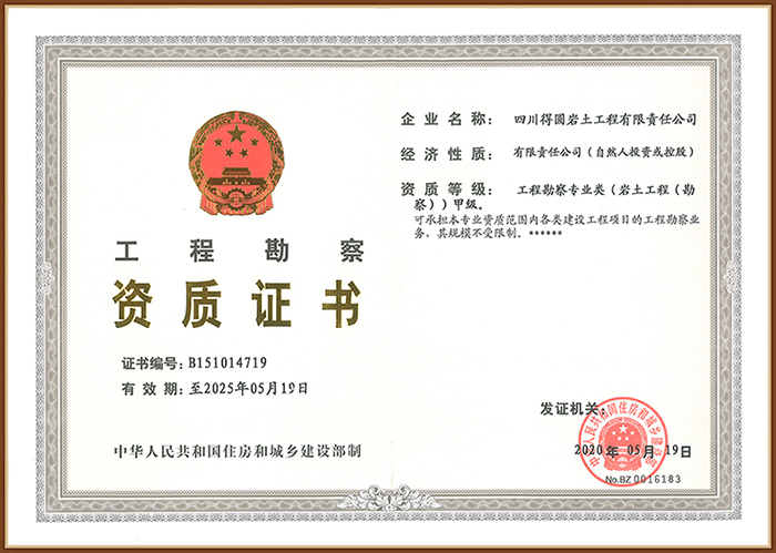 工程勘察资质(劳务、水文地质勘察、工程测量乙级)