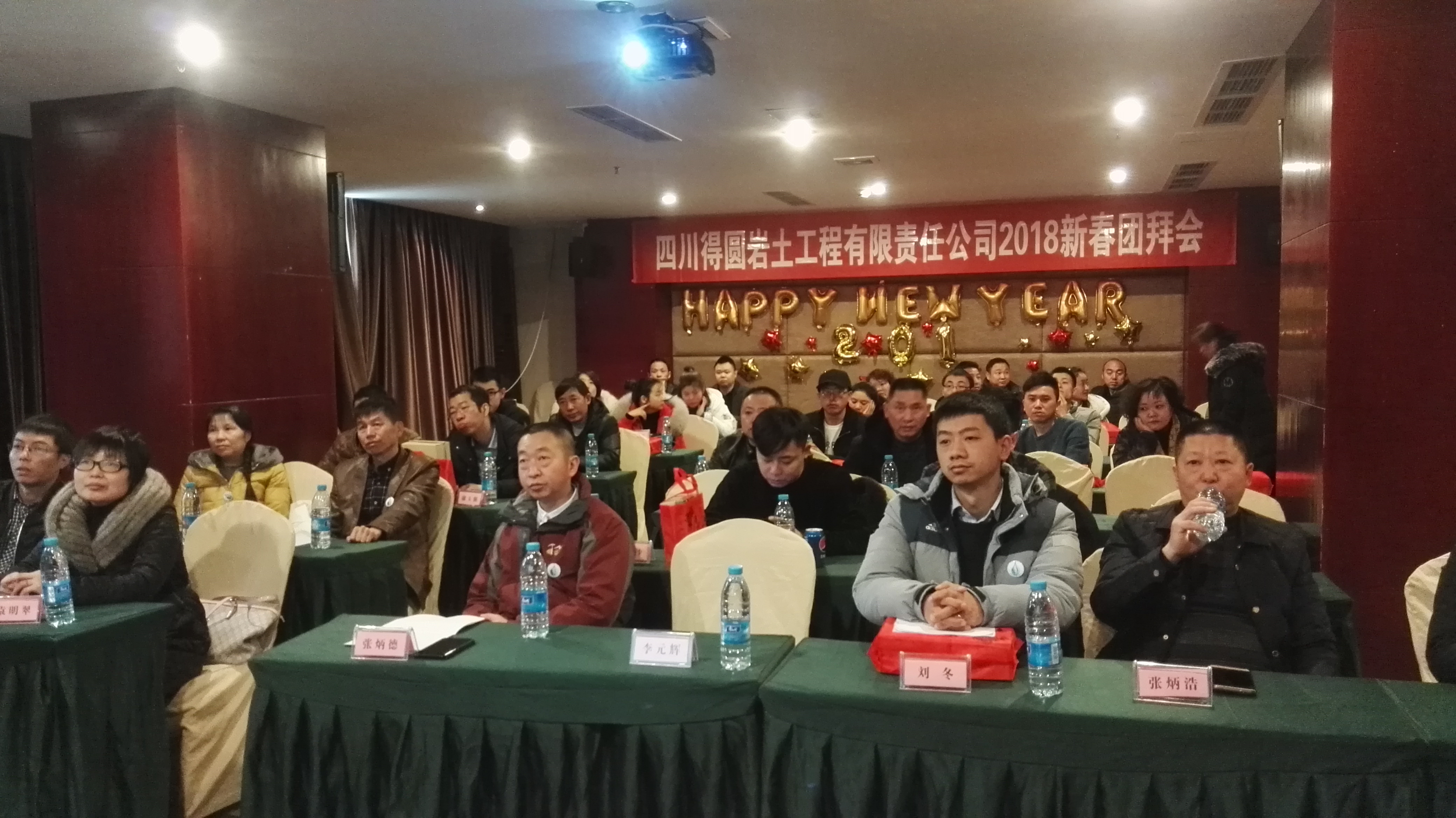 2018年2月2日,公司在成都市华都时代酒店举行了2018年新春团拜会暨2017年度表彰大会。董事长张炳德、副总经理李元辉、各分公司负责人、各部门经理以及长期合作的劳务队伍都莅临了此次团拜会的现场。此外,公司还邀请了一些与公司有长期合作的企事业单位参加此次会议。