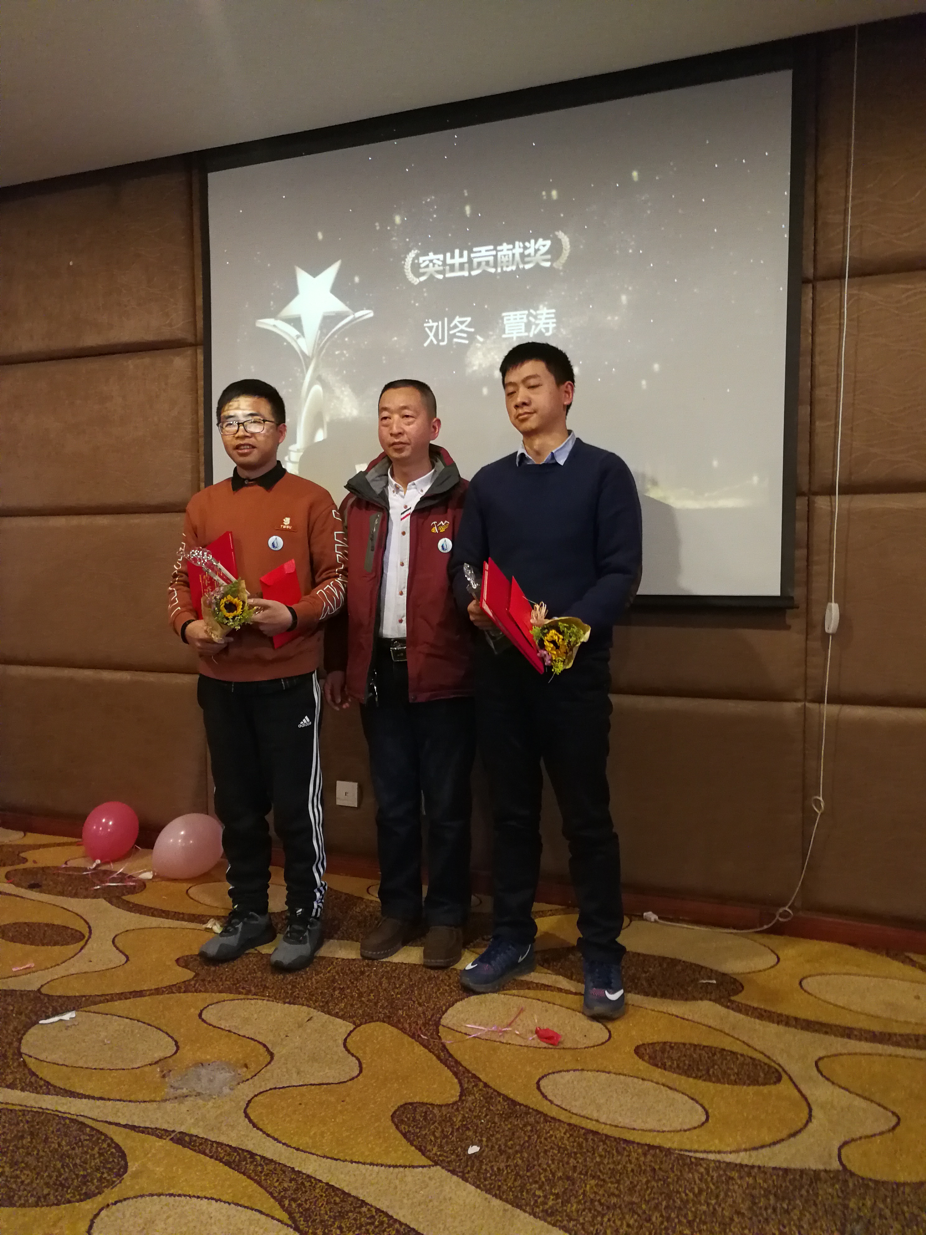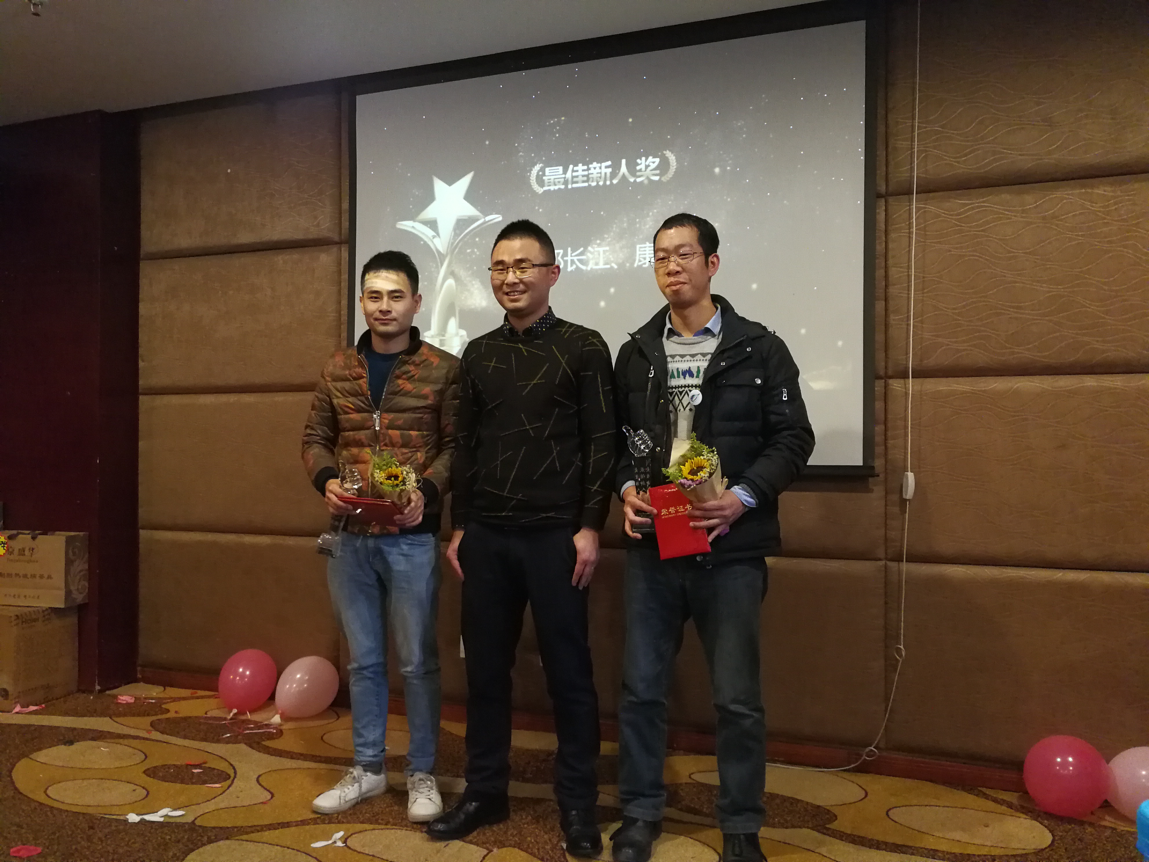 此外,公司对在2017年度工作表现突出的员工及分公司进行了表彰,会上共颁出十个奖项,其中,康玉强、郑长江荣获最佳新人奖,赵航获得最佳进步奖,曾梦,林忠华荣获特别鼓励奖,刘晓玲获得爱岗敬业奖,获得优秀先进个人的是廖邦福,徐丽红,苟雪梅,优秀项目经理获得者是贾文强,陈波、王威荣获卓越绩效奖,刘冬、覃涛荣获突出贡献奖,李元辉荣获特殊贡献奖,此外,获得最佳团队奖的是贵州分公司。